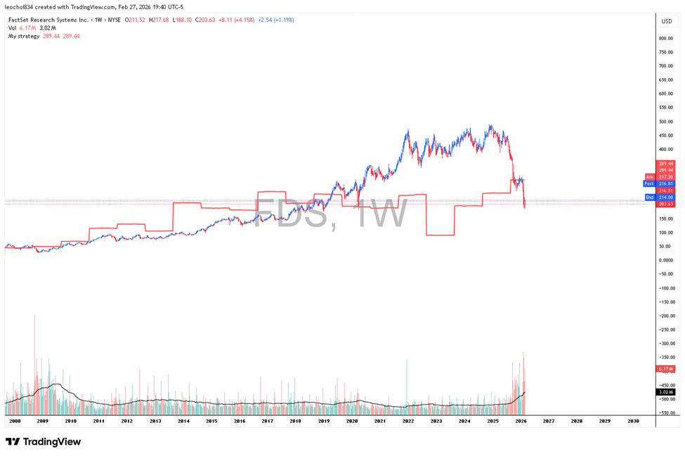 The current divergence between M&A activity and FactSet’s share price suggests a market inefficiency rather than a fundamental flaw. As deal-making activity has trended upward since fiscal 2025, the disconnect between this robust macroeconomic backdrop and the company's equity performance has created a compelling opportunity. When viewed through the lens of our valuation models, this discrepancy highlights a significant gap between the current share price and the company’s underlying intrinsic value, suggesting that FactSet is currently mispriced relative to its long-term growth potential and its superior ability to synthesize high-quality data.